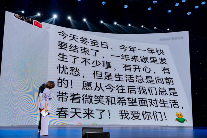 發(fā)布會(huì)現(xiàn)場(chǎng)還借助AI技術(shù)呈現(xiàn)了一段邊曉斌的生前寄語(yǔ)。斯人已逝,浩氣長(zhǎng)存。這段視頻帶給邊曉斌家屬心靈的慰藉,同時(shí)也激勵(lì)更多人微笑面對(duì)生活,永遠(yuǎn)向前看。