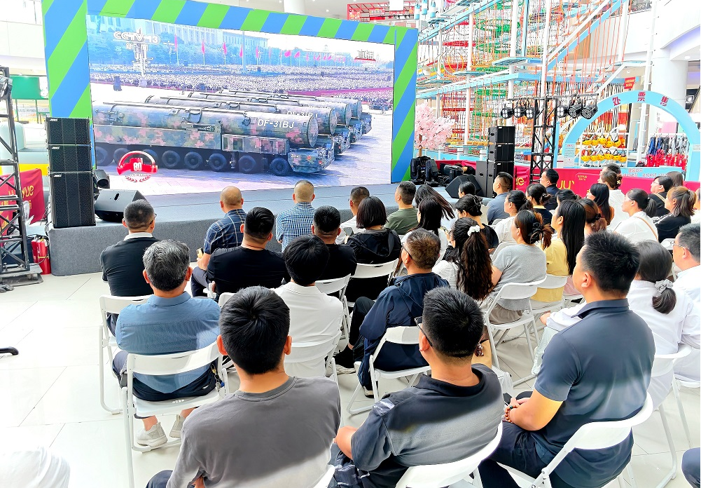 在沭陽縣新時(shí)代文明實(shí)踐中心,工作人員早早布置好觀看場地,附近的市民紛紛聚集于此觀看閱兵直播,閱兵式上的震撼場景讓許多人濕了眼眶?!凹o(jì)念勝利,就是為了讓我們以史為鑒,珍愛和平,開創(chuàng)未來。”市民陳婷婷說。在沭陽吾悅廣場、中央商場,不少市民也自發(fā)聚在大屏前,集中觀看閱兵儀式。當(dāng)整齊劃一的徒步方隊(duì)、先進(jìn)精良的裝備方隊(duì)以及空中梯隊(duì)依次出現(xiàn)在畫面中時(shí),全場掌聲雷動,歡呼聲此起彼伏,每一個(gè)人臉上都是滿滿的自豪感和榮譽(yù)感。