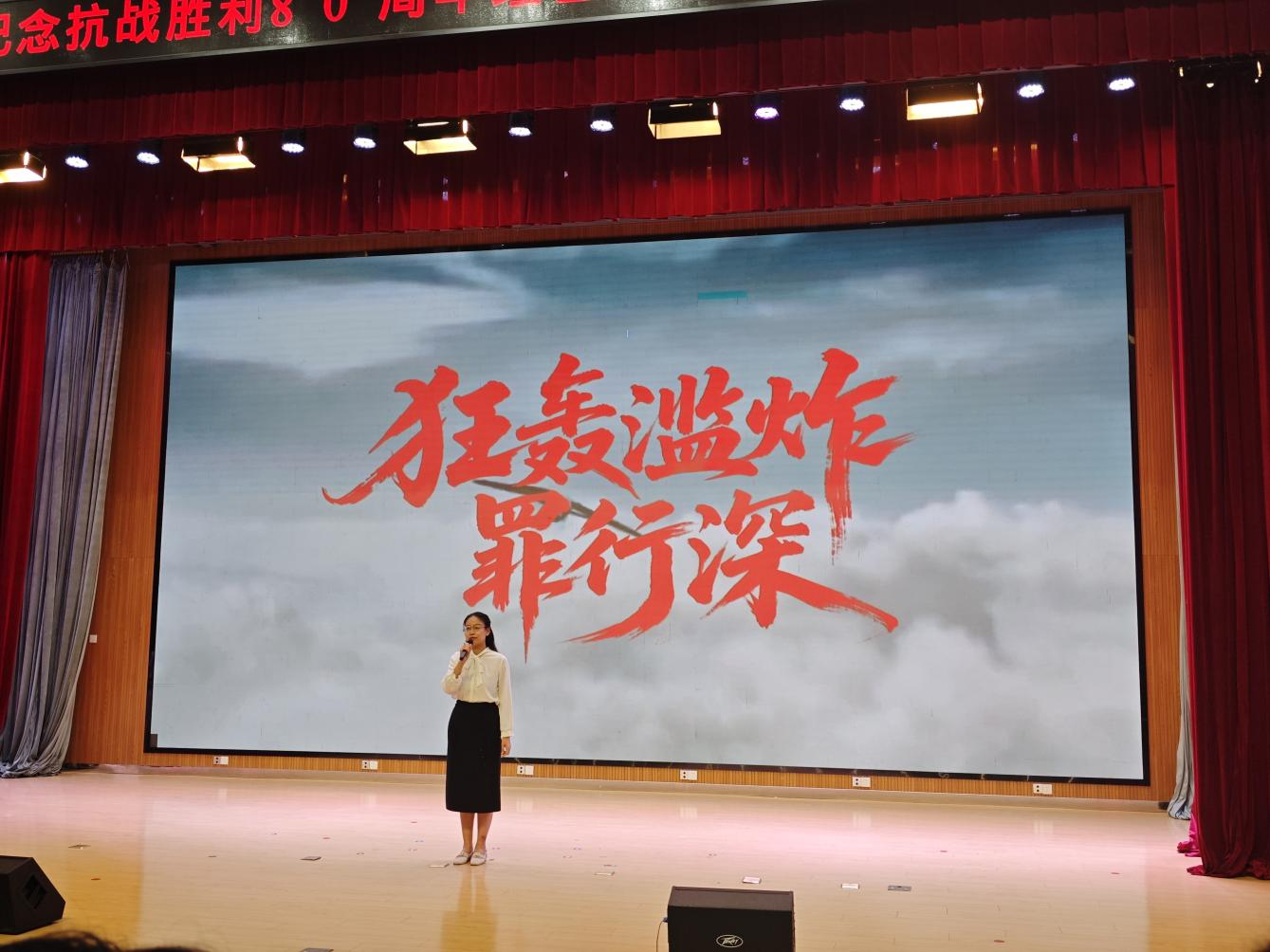 宣講活動(dòng)上,來(lái)自宿豫區(qū)“抗戰(zhàn)精神”宣講團(tuán)的宣講員以飽滿的熱情和扎實(shí)的宣講功底,生動(dòng)再現(xiàn)了抗日戰(zhàn)爭(zhēng)時(shí)期的重大歷史事件和英雄事跡?!鞍伺督钡墓适伦屧趫?chǎng)師生無(wú)不動(dòng)容,“等到抗戰(zhàn)勝利,等到新中國(guó)的旗幟飄揚(yáng),每一個(gè)活下來(lái)的中國(guó)人,都是您的兒女?!毙v員話音未落,臺(tái)下已響起陣陣啜泣聲。在講述“西安事變”時(shí),宣講員重點(diǎn)強(qiáng)調(diào)了這場(chǎng)事變對(duì)于促成抗日民族統(tǒng)一戰(zhàn)線建立的重大意義?!爸袊?guó)共產(chǎn)黨的胸懷、格局和眼光,不但決定了自己的命運(yùn),更影響和改變了民族的命運(yùn)?!标P(guān)于“南京大屠殺”的講述將師生們帶回了那段至暗的歷史時(shí)刻,宣講員通過(guò)詳實(shí)的歷史資料和幸存者證言,揭露了侵華日軍暴行,警示大家要牢記歷史教訓(xùn)?!凹o(jì)念不是為了延續(xù)仇恨,而是讓30萬(wàn)冤魂的凝視,成為照亮人類(lèi)前程的燈塔?!薄皠⒗锨f連”82烈士的事跡則將整場(chǎng)宣講推向高潮,“明知不可戰(zhàn)而戰(zhàn)之,明知戰(zhàn)必死而戰(zhàn)之。”展現(xiàn)了中國(guó)人民誓死抗戰(zhàn)的堅(jiān)定決心。